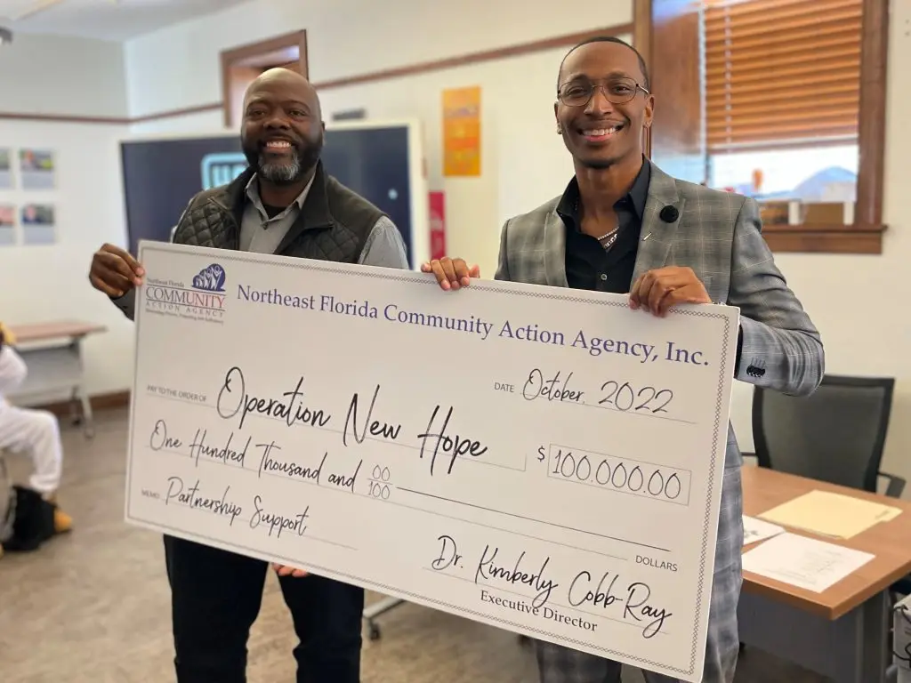 Operation New Hope extends our most sincere thanks to Northeast Florida Community Action Agency for their significant donation in support of our mission. The $100,000 check presentation was made at our weekly Ready4Work client graduation on Friday, November 18, 2022, at noon.