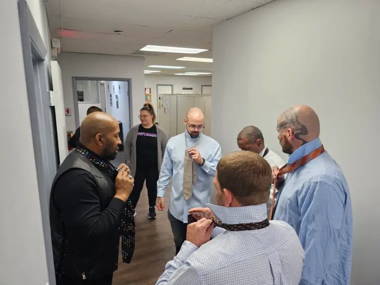 Our Ready4Work Orlando clients recently added a new skill to their repertoire: tying a tie. The Ready4Work program not only helps clients transition home from incarceration but also places a strong emphasis on being prepared to enter the workforce. With a comprehensive approach encompassing case management, mental health counseling, supportive services, job training, and placement assistance, Ready4Work ensures our clients succeed.