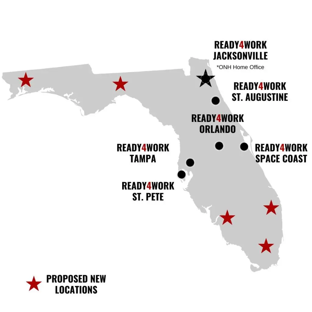 Operation New Hope celebrates its 25th anniversary! To continue to meet the needs of the more than 30,000 people who return home every year from Florida’s prisons, we are committed to continuing the expansion of our Statewide Reentry Network. We expanded our Ready4Work program in summer 2024 with new locations in Tampa and St. Petersburg and are actively collaborating with community partners statewide to establish additional program sites. Stay tuned!