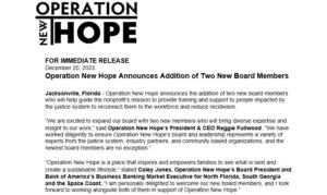 Press Release: Operation New Hope Announces Addition of Two New Board Members Read More » December 20, 2023 No Comments