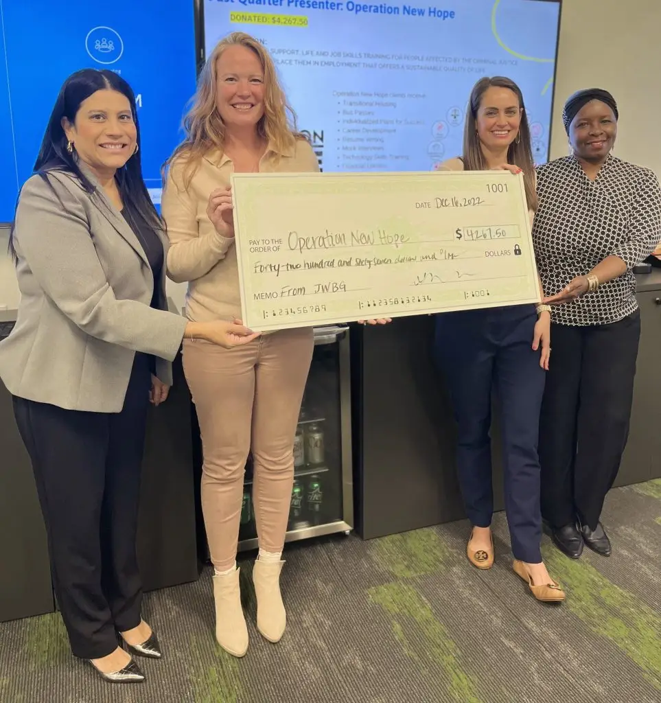 Our team at Operation New Hope extends our most sincere thanks to the Jacksonville Women in Business for Good for their support of the critical programs and services we provide to the people of Northeast Florida. These funds will go a long way to help our clients reconnect to the workforce, their families, and the community after their release from incarceration.
