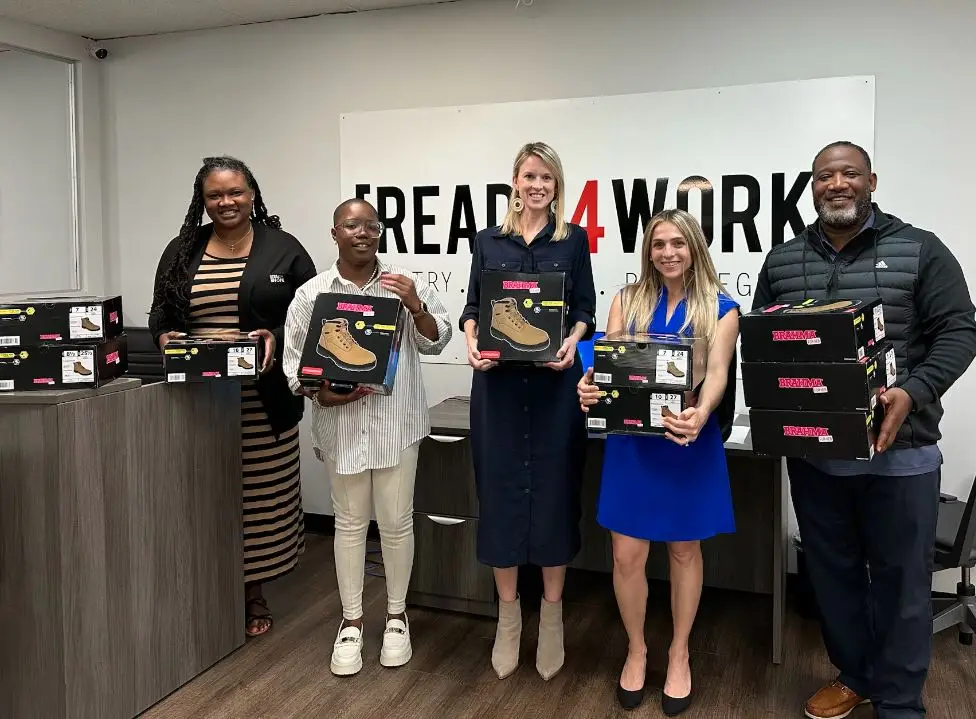 We extend our sincere thanks to Turner Construction for their generous donation of women’s work boots to our Ready4Work programs in Orlando and Jacksonville. Mimi Flatley, Community & Citizenship Manager for Turner Construction Orlando explained that the donation is in honor of International Women’s Day and Women in Construction Week.
